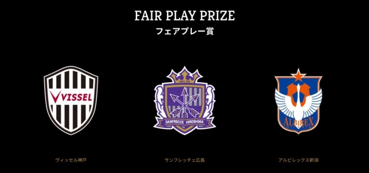 公平竞赛球队奖得主:神户胜利船、广岛三箭、新泻天鹅