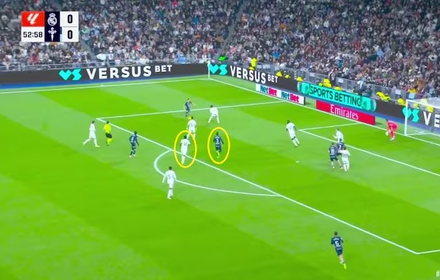 居莱尔最终被明格萨轻松摆脱,明格萨利用自己的比赛经验,通过内切攻击了皇马的弱点。莫里巴站在琼阿梅尼身后,迫使后者不得不去拦截明格萨。虽然进球由斯韦德贝里打进,但塞尔塔其他球员也有机会破门。琼阿梅尼未能阻止明格萨进入禁区,他的反应迟缓,体现了皇马在防守标记上的疏忽,弗兰·加西亚的表现更为糟糕。
