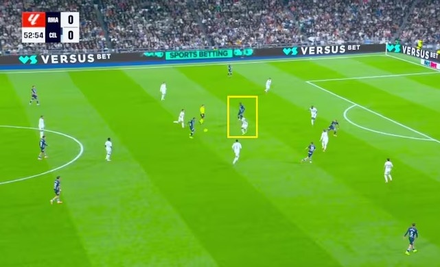 皇马过于轻易地崩溃了,姆巴佩和维尼修斯没有在前场施加足够的压力,居莱尔和贝林厄姆的位置选择错误,巴尔韦德盲目奔跑,琼阿梅尼在中场孤立无援。后防线上情况更糟,缺少米利唐的纠正作用,塞尔塔的进攻在最后几米处得以完成,这也阻碍了皇马的反击。