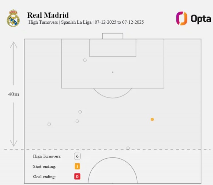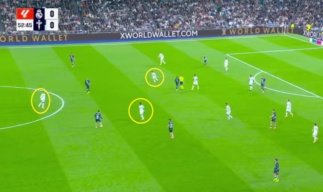 阿隆索的高压战术在各个方向都出现了漏洞,缺乏能量和战术上的稳固性,无法有效抢断对手的球权,特别是在中场和每次进攻的重新启动时。整个防线位置不当,被塞尔塔的移动能力所压制,而这正是皇马自身所欠缺的。