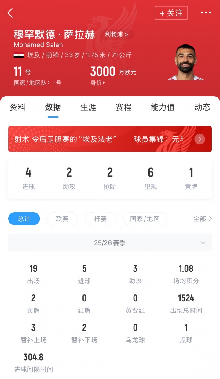 身价已跌至3000万!电讯报:沙特愿不惜一切代价签萨拉赫+1月报价