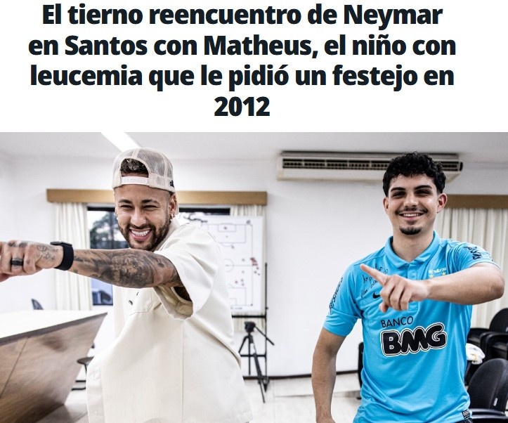 该媒体表示,两人的故事始于2012年,当时年仅6岁且患有白血病的马特乌斯拜访俱乐部,请求内马尔在进球后跳一段特别的舞蹈为他加油。