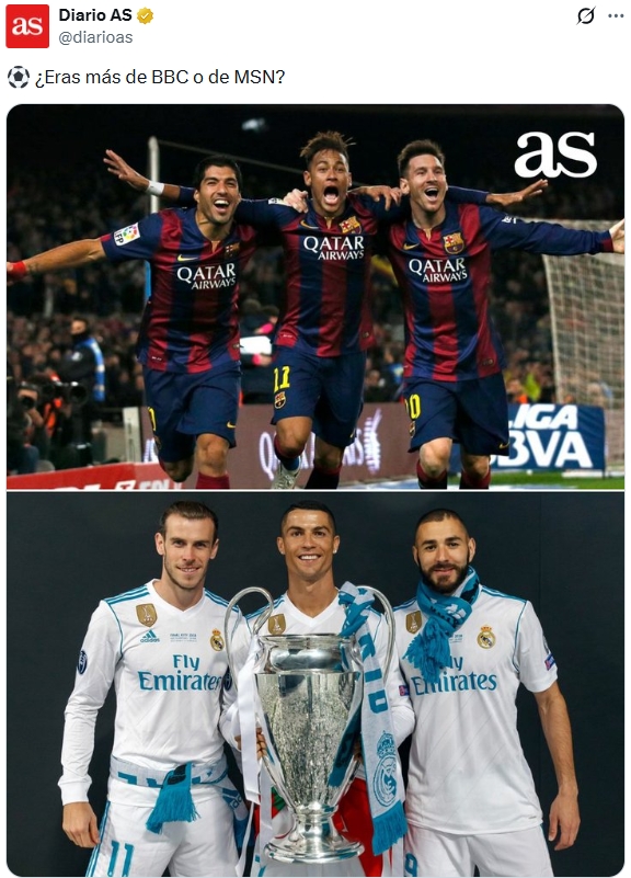 经典PK!阿斯报晒图发问:你更喜欢BBC,还是MSN?