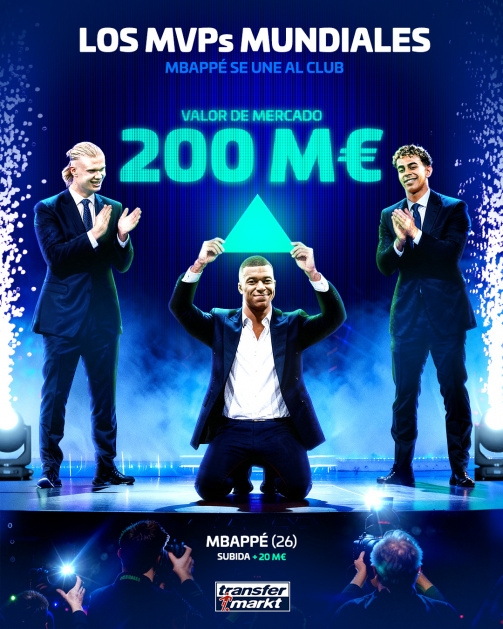 零点吧足球12月12日讯 德转今日更新西甲身价,姆巴佩上涨至2亿欧,与亚马尔和哈兰德并列全球身价第一。