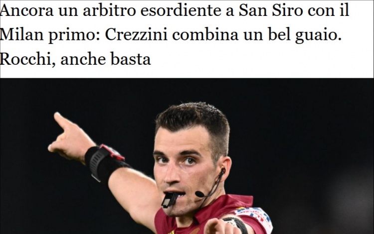 米兰2-2萨索洛是克雷齐尼他执法的第七场意甲比赛,也是今年是第六场。他的经验不足在这场看似平静的比赛中表现得淋漓尽致,频繁地吹错哨并误判犯规。在下半场,裁判组犯了一个严重错误。