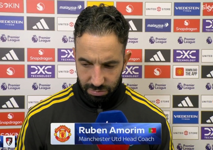 零点吧足球12月16日讯 本轮英超,曼联4-4惊险战平伯恩茅斯,赛后阿莫林接受BBC和天空体育采访。