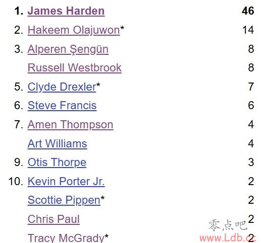 据统计,这是申京火箭生涯第9次三双,队史超越威少,独居火箭队史三双榜第三位,仅次于哈登(46)和奥拉朱旺(14)。