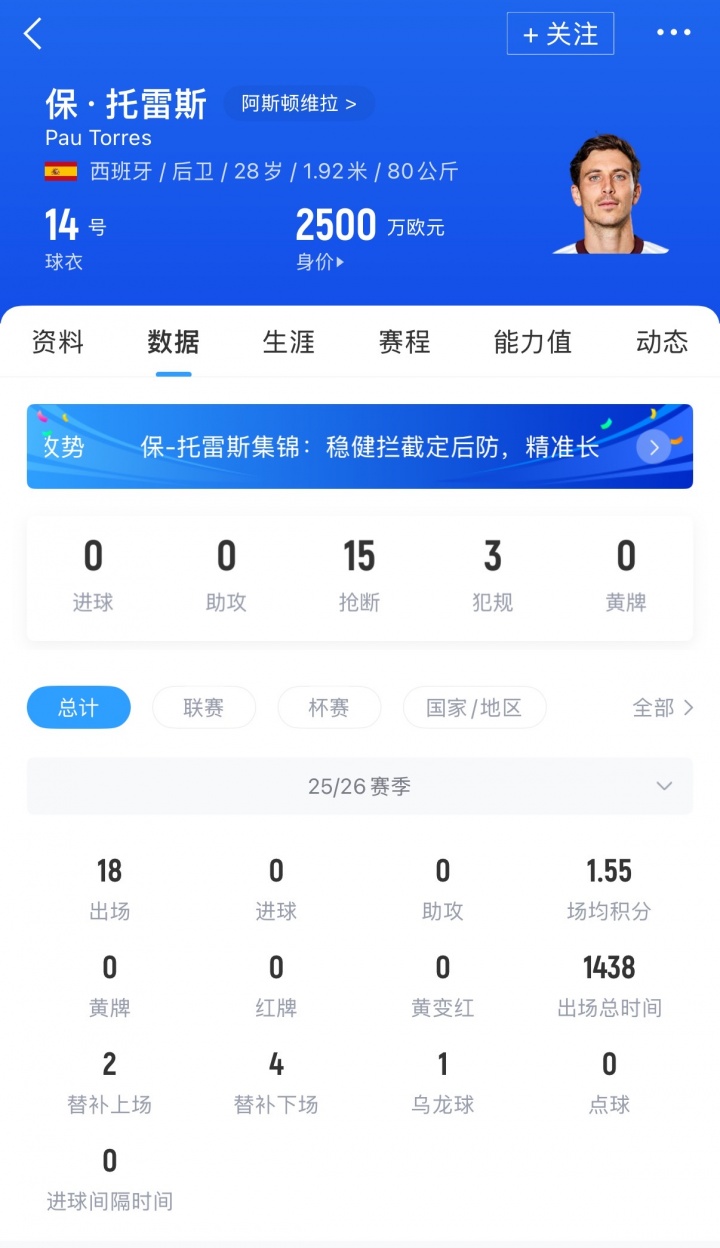 巴萨此前就有意引进保托雷斯,但他最终以总价4000万欧元转会费加盟维拉。巴萨也很清楚,考虑到球员是维拉重要一员,签下他并非易事。但消息人士表示,虽然托雷斯与维拉合同在2028年才到期,但如果巴萨认真考虑签下他,他会考虑重返西班牙。