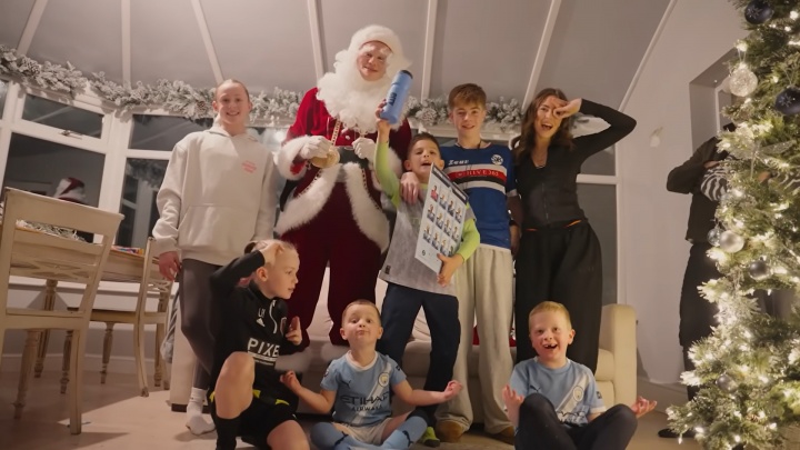 零点吧足球12月16日讯 哈兰德今日在个人youtube频道更新视频,在这期视频中,这位曼城球星装扮成圣诞老人跟孩子们互动。
