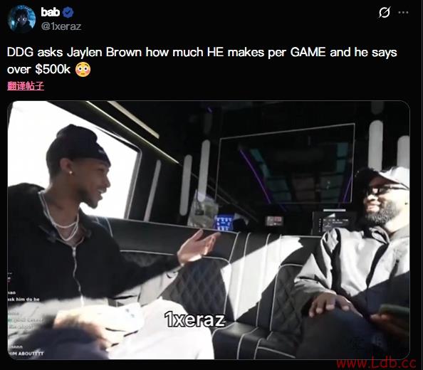 零点吧12月19日讯 凯尔特人球星杰伦·布朗在友人的直播中透露。自己一场比赛可以赚500000美金。