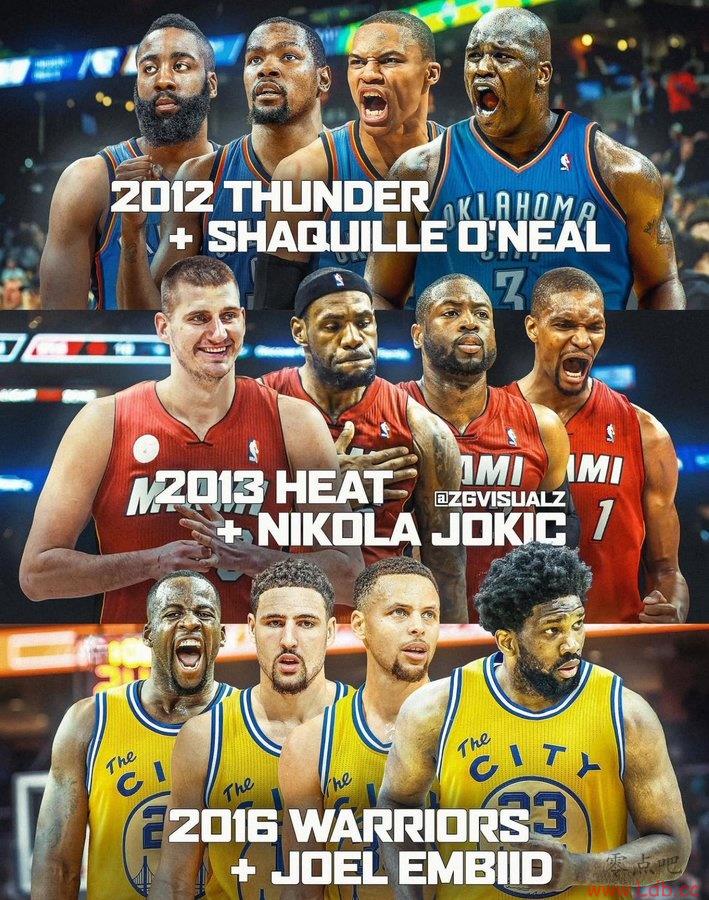 美媒:12雷霆+奥尼尔 VS 13热火+约基奇 VS 16勇士+恩比德 选谁?