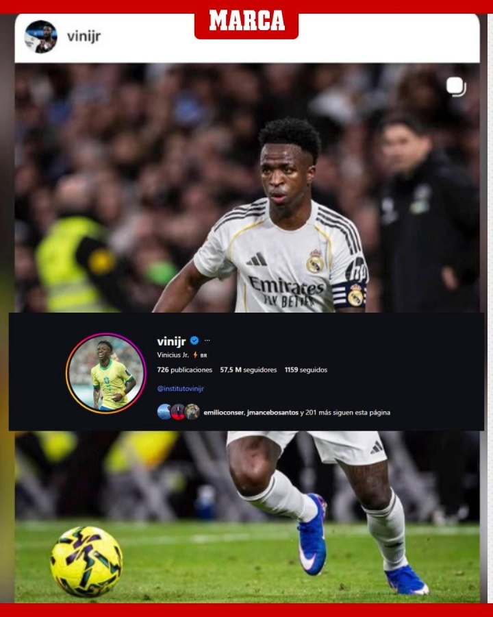 赛后,维尼修斯将社媒头像将原本的手举皇马球衣照,换成了身穿巴西队球衣的照片,并发表动态,配文只有三个点:“...”。