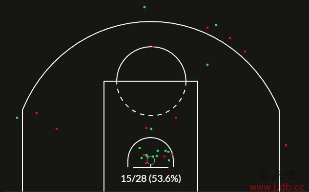 据自媒体博主J.Medi总结:“勒布朗取得赛季新高36分,其中许多分数都是来自于强力突破和篮下得分。今晚他在合理冲撞区内14投10中(命中率71%),远超他本赛季场均4.6次合理冲撞区出手和67%的命中率。这对他的得分能力和下肢舒适度来说是一个非常好的迹象。”