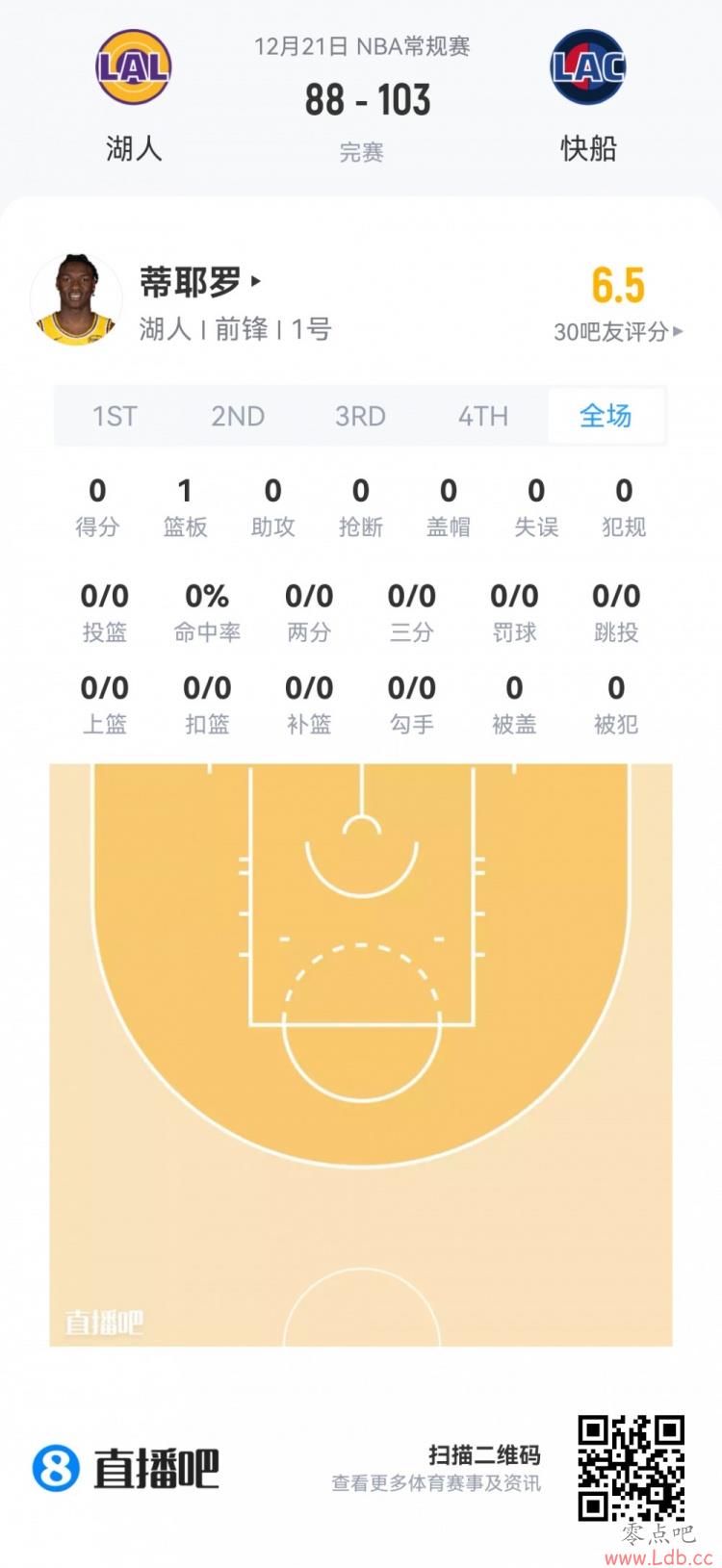 湖人次轮36号秀阿杜·蒂耶罗 登场5.8分钟