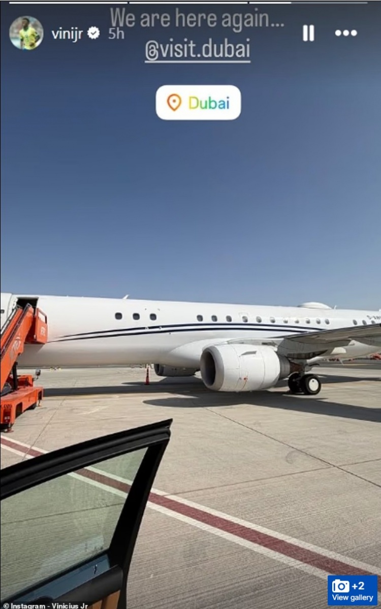 周六晚上,在皇马2-0战胜塞维利亚的比赛中,维尼修斯在被换下场时遭到自家球迷的嘘声。这位前锋在离场时没有向球迷致意。周日上午,维尼修斯在Instagram上分享了一张他在迪拜的照片,这次旅行据称是皇马与迪拜旅游局合作的一部分。他发布了一张似乎是在迪拜阳光下的私人飞机照片,并配文:“我们又来了... @visit.dubai。”