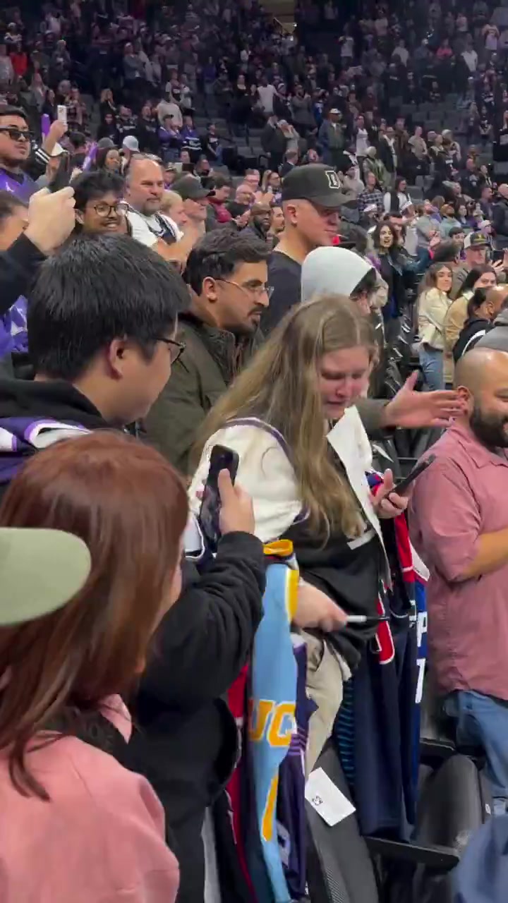 威少将比赛球衣送给女球迷 后者拿着威少生涯...