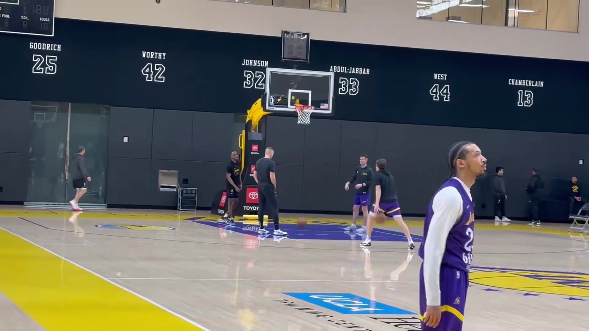 据湖人随队记者DaveMcMenamin报道,湖人球员里夫斯在今天训练结束后与助教进行了额外训练