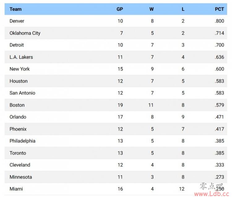 打胜率超过五成球队胜率最高的是掘金,8胜2负,胜率80%!