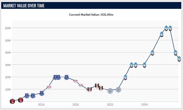 而在半年前卢克曼身价还有6000万欧,如今卢克曼身价两连降,降幅达2500万欧。