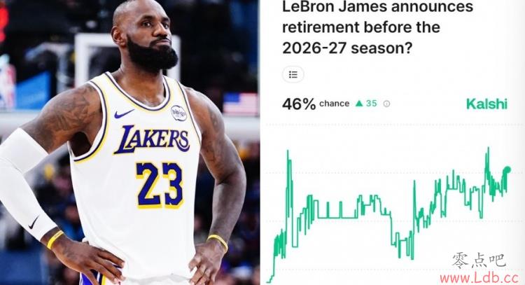 零点吧12月24日讯 据美媒Kalshi Sports预测,最新消息显示,勒布朗·詹姆斯有46%的可能性在下个赛季开始前宣布退役。他是否会不进行告别巡演就直接退役呢?