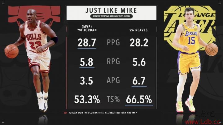 湖媒对比今年里夫斯和98MVP乔丹:数据极为相似 里夫斯助攻占优