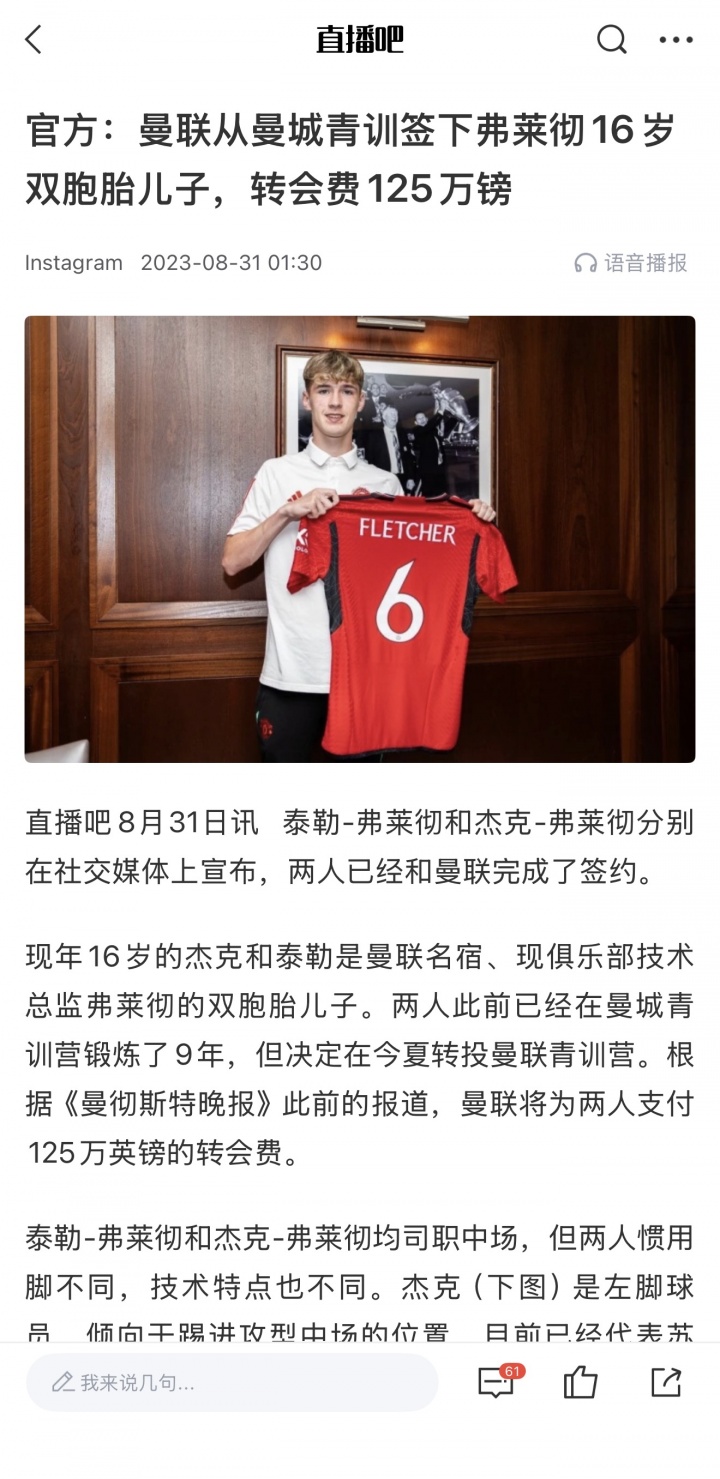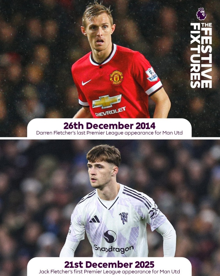杰克·弗莱彻的父亲是曼联名宿达伦·弗莱彻。现年41岁达伦·弗莱彻生涯共为曼联出场342次,他最后一次代表曼联在英超出场是2014年12月26日,11年后他的儿子完成了传承。
