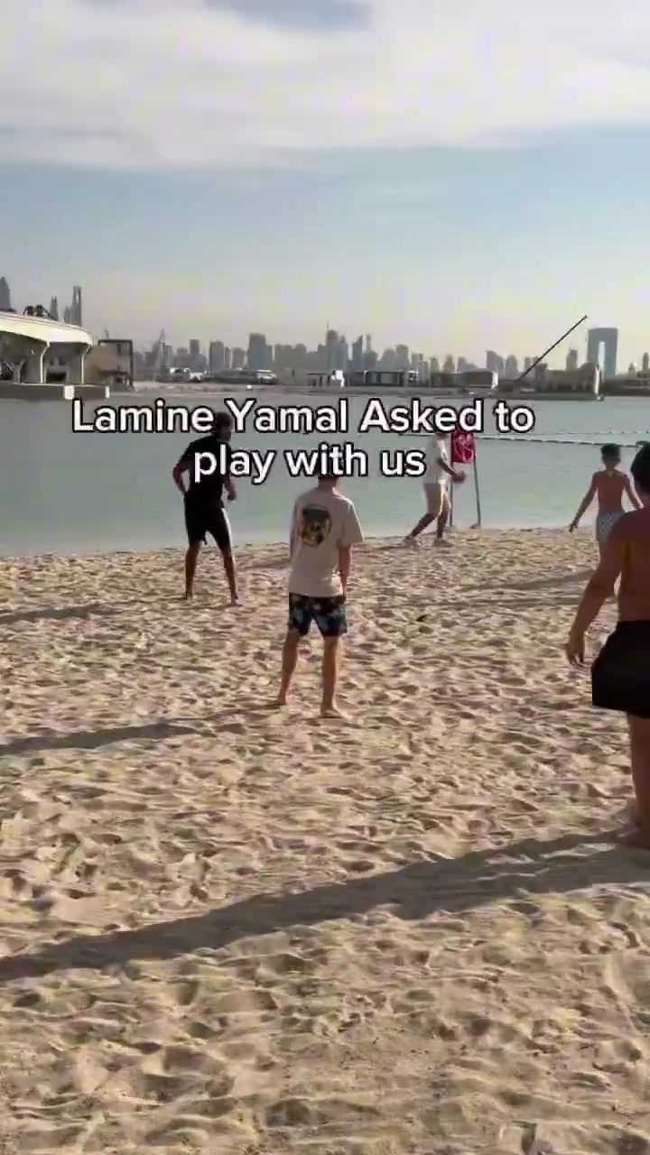 惊喜!亚马尔圣诞假期在迪拜海滩与孩子们一起踢球