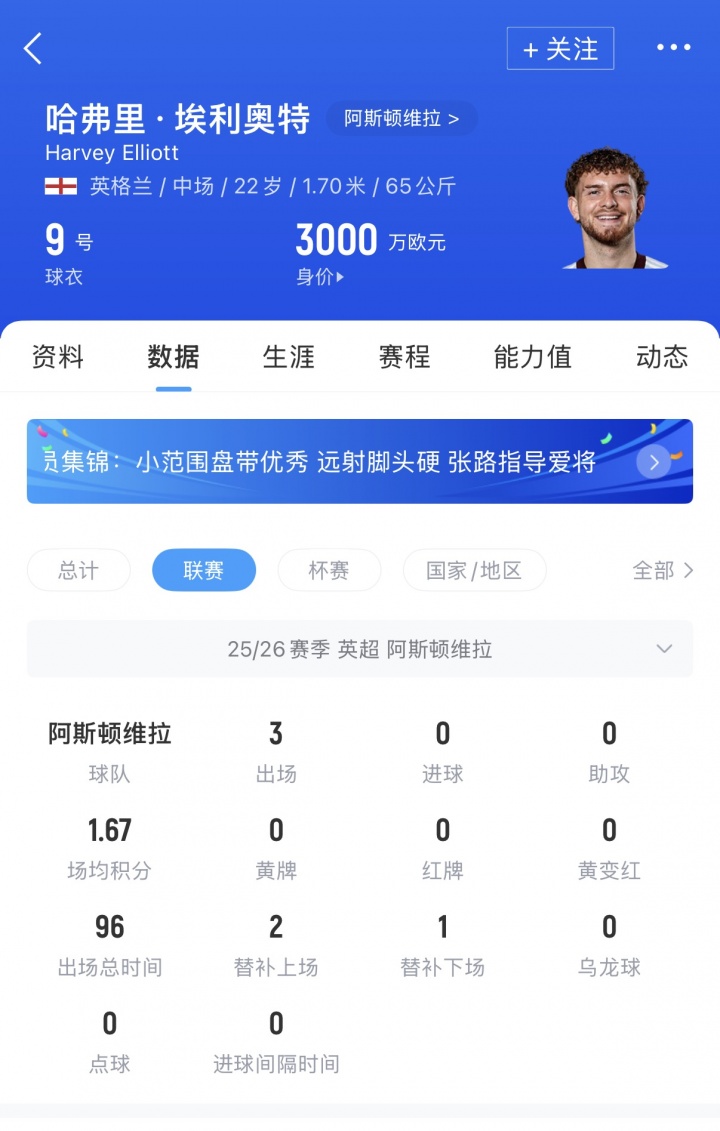 22岁的埃利奥特租借加盟维拉时,包含有强制买断条款。若是他代表维拉出战10场比赛,就会被3500万镑买断。但是本赛季至今,埃利奥特只为维拉出场5次。在今年10月3日的欧联杯出战费耶诺德后,埃利奥特就再也没有为维拉出过场。