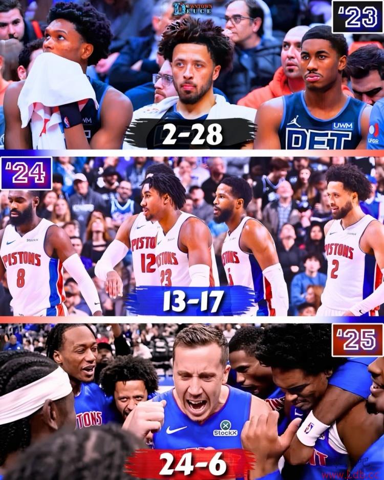 活塞近3年前30场战绩!23年2胜28负→24年13胜17负→今年24胜6负