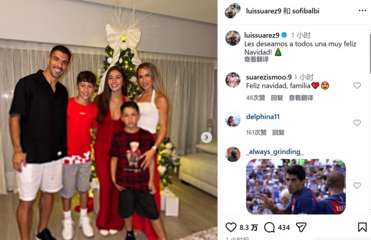 苏亚雷斯写道:“我们祝你们所有人圣诞节快乐!”