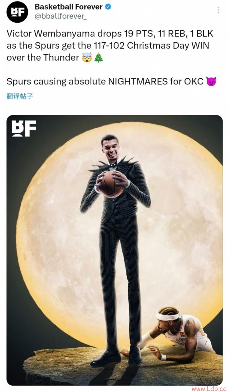 圣诞大战再赢一场!美媒:马刺给雷霆带来了绝对的梦魇