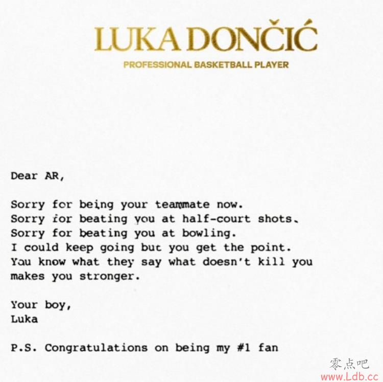 零点吧12月26日讯 今天是美国当地时间的圣诞节,东契奇为队友里夫斯送上了一封公开信,全文如下: