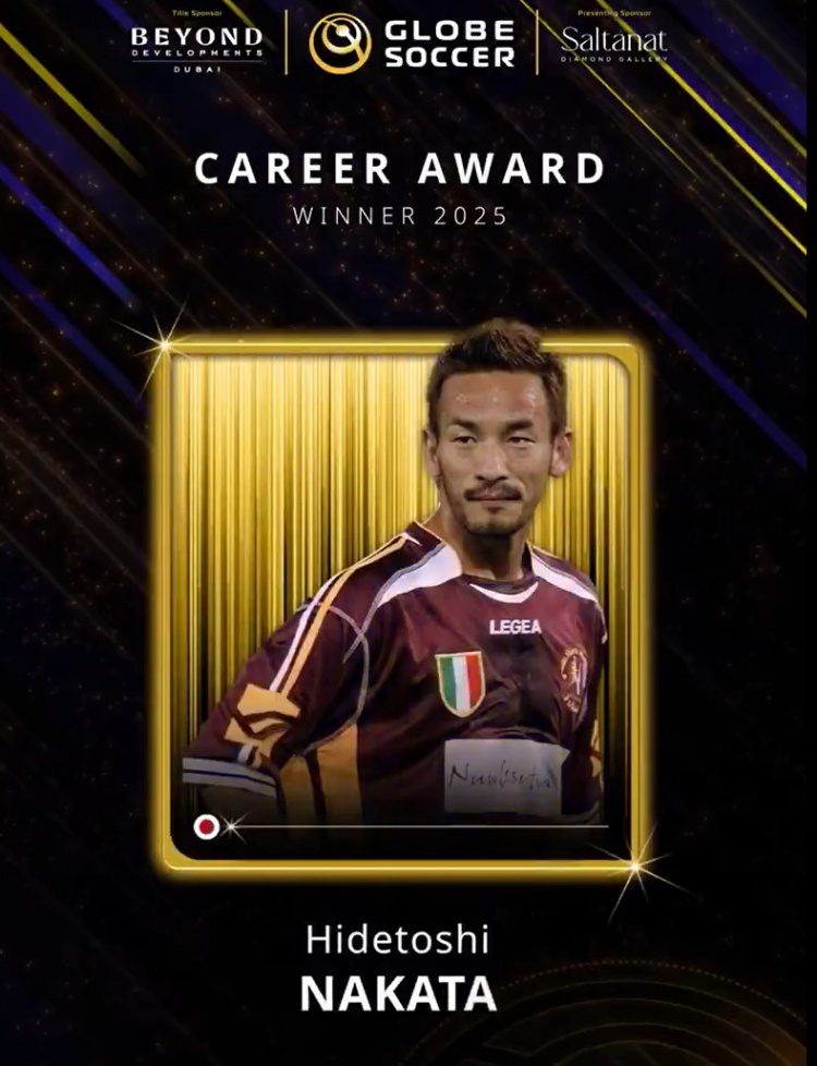 零点吧足球12月29日讯 环足奖年度颁奖典礼,中田英寿获2025年度生涯奖。