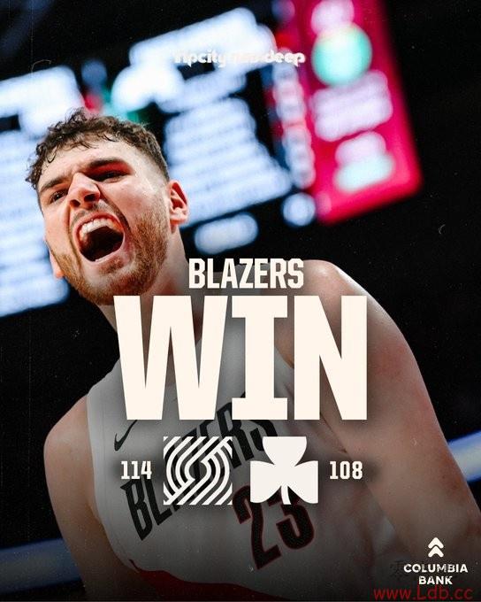 赛后,开拓者官方发布赢球海报,克林根怒吼瞬间成为封面!