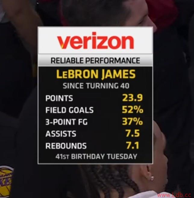 詹姆斯还有不到两天将迎来自己的41岁生日(当地时间12月30日),据统计,40岁以来,詹姆斯场均可以轰下23.9分7.5篮板7.1助攻,投篮命中率52%,三分命中率37%。
