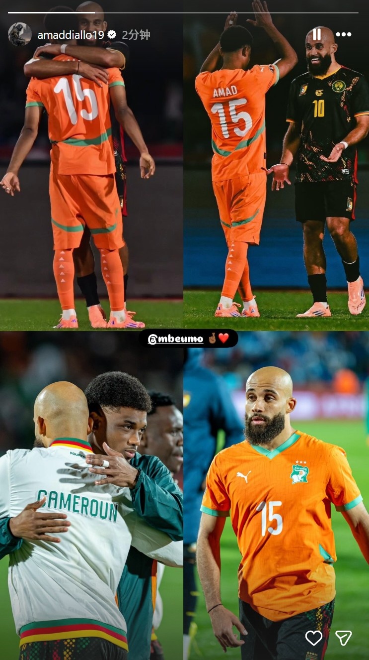 赛后,阿玛德与姆伯莫交换了球衣,阿玛德在社媒上晒出了与姆伯莫在球场的照片。