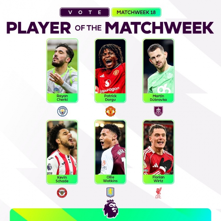 零点吧足球12月29日讯 英超官方公布了英超第18轮周最佳球员候选名单,其中候选六人为谢尔基、多古、马丁·杜布拉夫卡、凯文·沙德、沃特金斯、维尔茨。