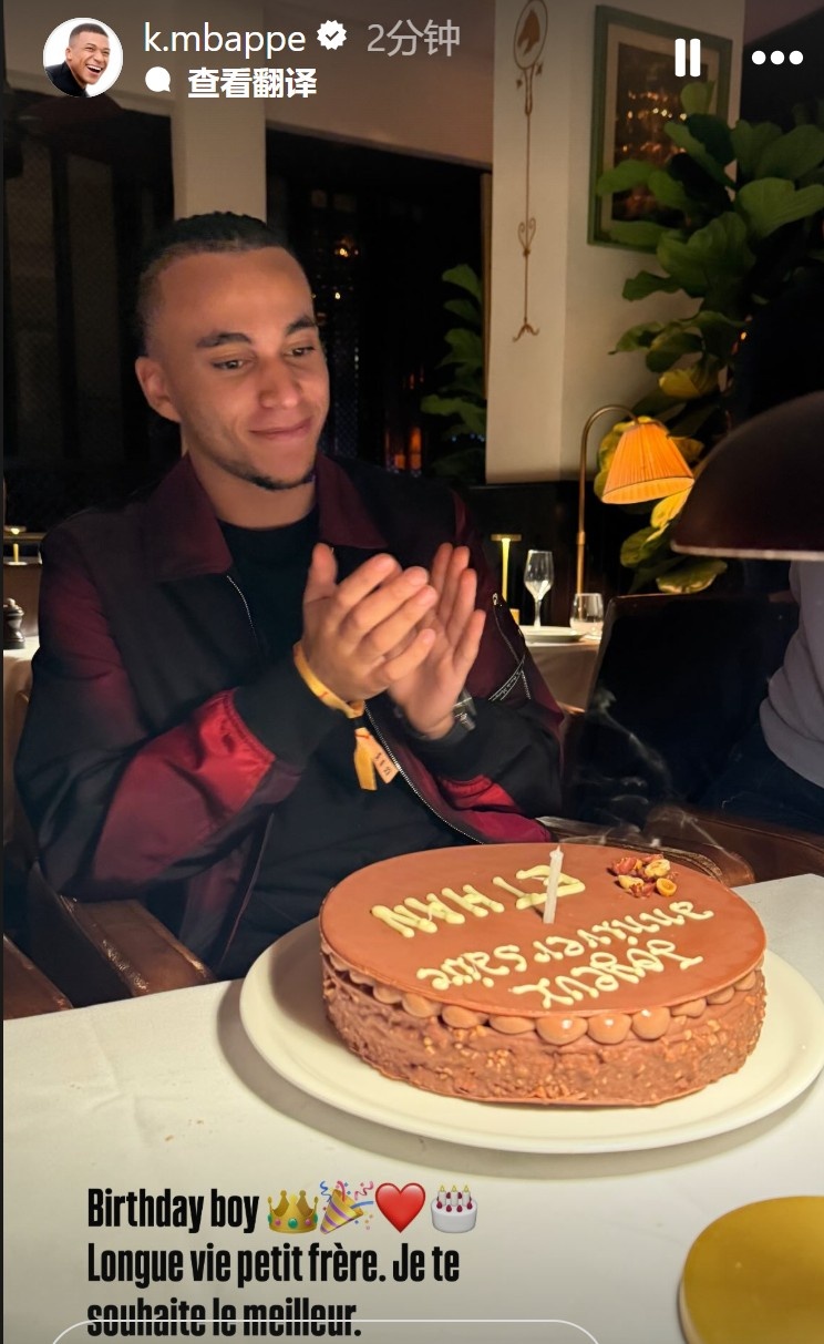零点吧足球12月30日讯 姆巴佩更新社媒,晒出自己为弟弟伊桑庆祝生日的照片。