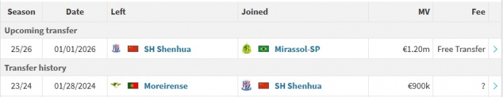 零点吧足球12月30日讯 德转更新球员信息,上海申花外援安德烈·路易斯将在合同到期后自由身加盟巴甲米拉索尔。