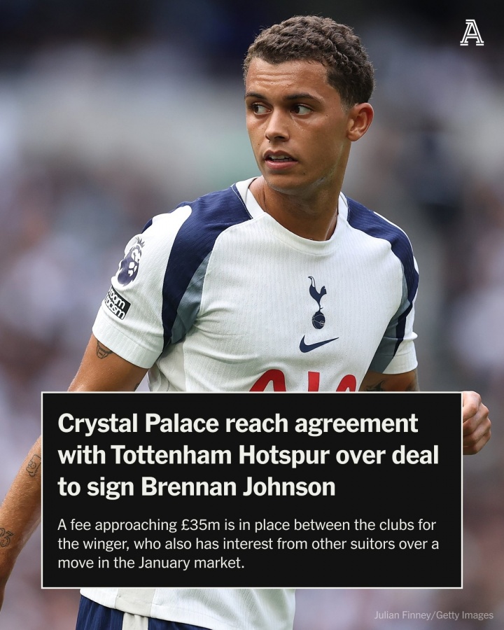 零点吧足球12月30日讯 据The Athletic名记奥恩斯坦报道,水晶宫已经与热刺达成协议,以近3500万镑转会费签布伦南·约翰逊。