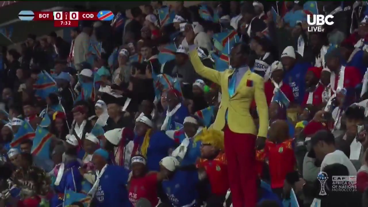 非洲杯最火球迷??民主刚果一球迷身着西装助威,如雕像一动不动