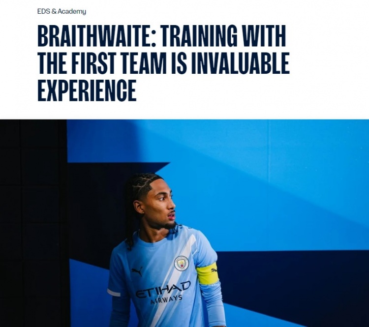零点吧足球1月1日讯 近日,曼城U18队长凯登·布雷斯韦特接受了俱乐部官媒的采访,他谈到了与一线队一同训练的宝贵经历。