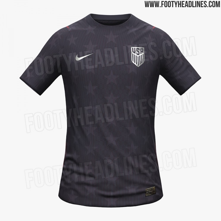 美国队2026年世界杯客场球衣谍照:碳黑色主色+银色logo+星形图案
