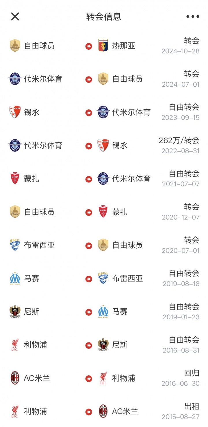 9-2024年10月,自由身加盟热那亚