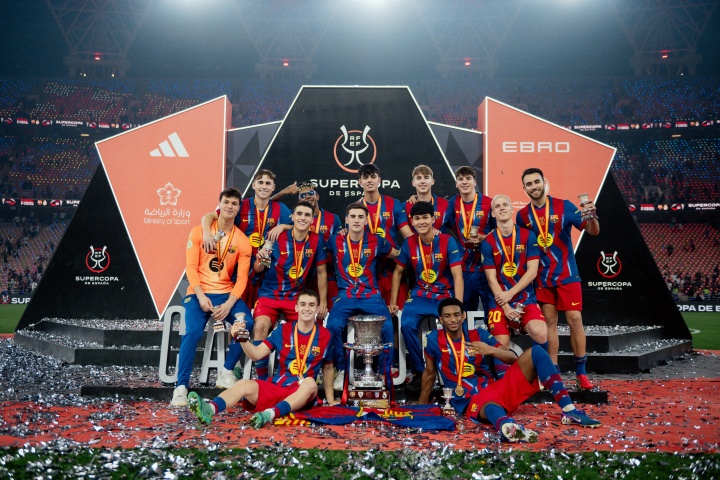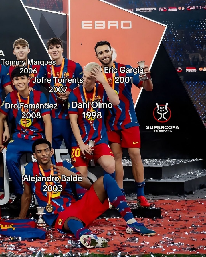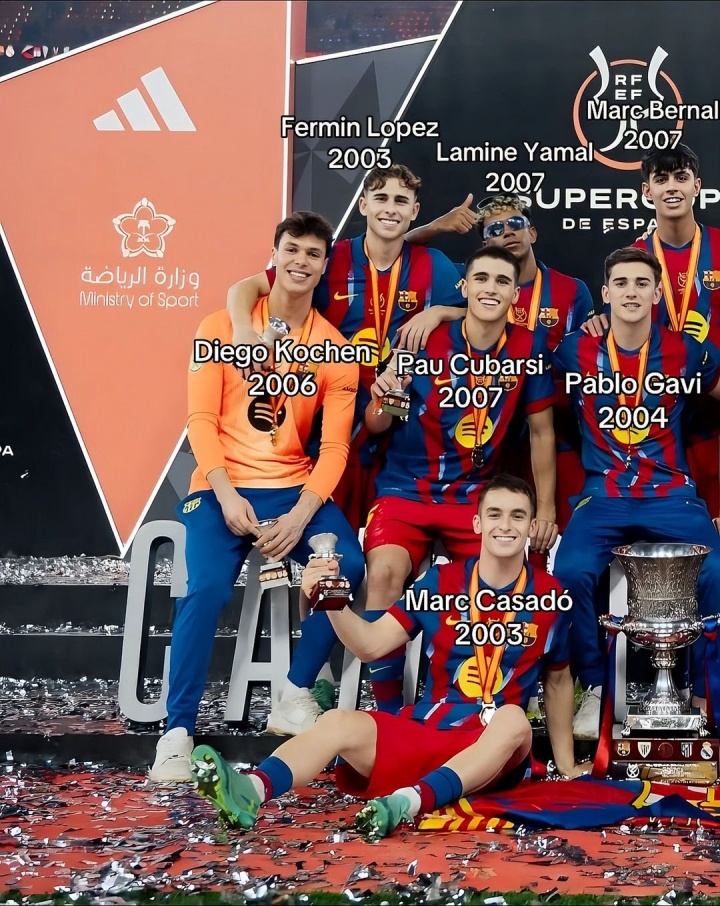 巴萨最宝贵的财富!拉玛西亚13人西超杯夺冠合影,一半以上是U21