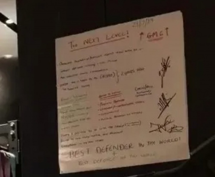 眼尖的阿森纳球迷发现,他家中健身房的墙上挂着一块写满激励语句的“愿景板”,用于帮助自己实现目标。其中赫然写着:“世界最佳后卫”、“世界最佳防线”以及被重点标注的“迈向下一级别”。