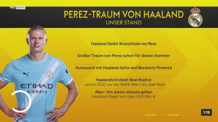 目前还没有其他媒体对此报道进行证实。2025年1月17日(约一年整前),曼城官方宣布与哈兰德签订了一份超长的合同,新合同至2034年结束。此前德天空也曾报道称,若皇马将维尼修斯出售至沙特,哈兰德将成为他们的首要目标。