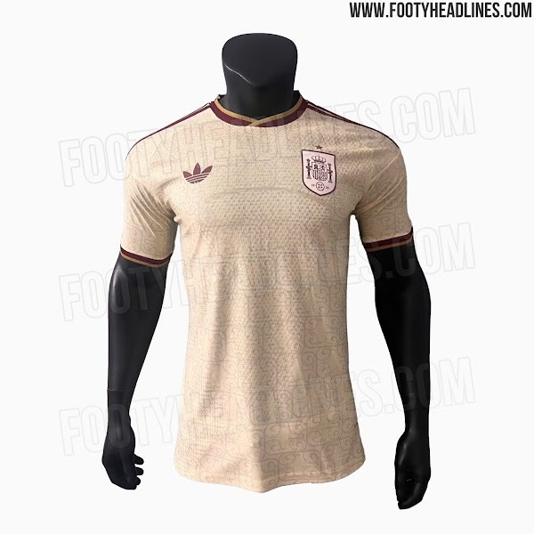 复古优雅!西班牙2026世界杯客场球衣谍照:米白色调,三叶草LOGO