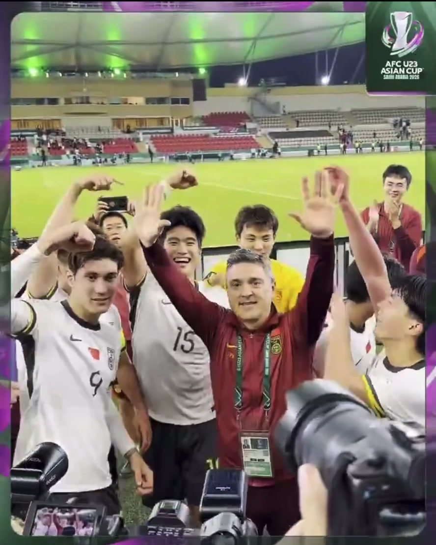 赛后U23亚洲杯官方晒出了U23国足赛后庆祝的视频,视频中球员们将主教练安东尼奥抛向空中,兴奋的球员们在面对摄像头时集体做出庆祝动作,并最后举着国旗合影留念。