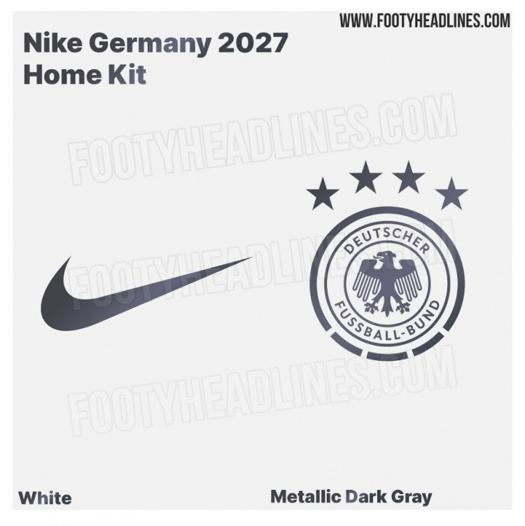耐克设计首秀!德国2027年主场球衣细节曝光:白色搭配金属深灰色